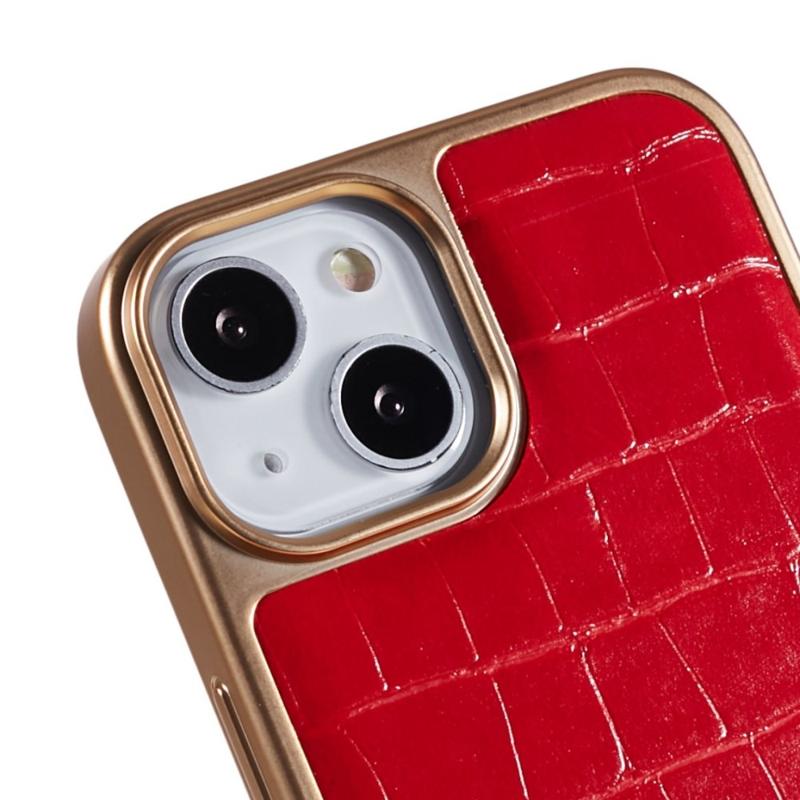 Fierre Shann Elektropläterat iPhone 14 Belagt Skal - Crocodile - Röd