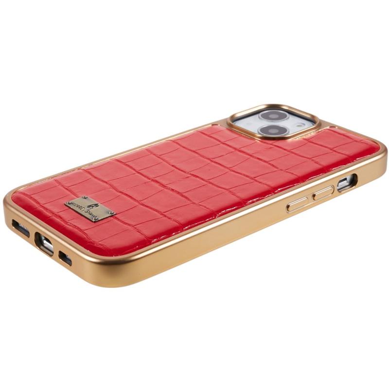 FIERRE SHANN För iPhone 14 Plus Krokodilstruktur PU-läderbelagd TPU-bakfodral Smartphone Elektropläterat skyddsfodral