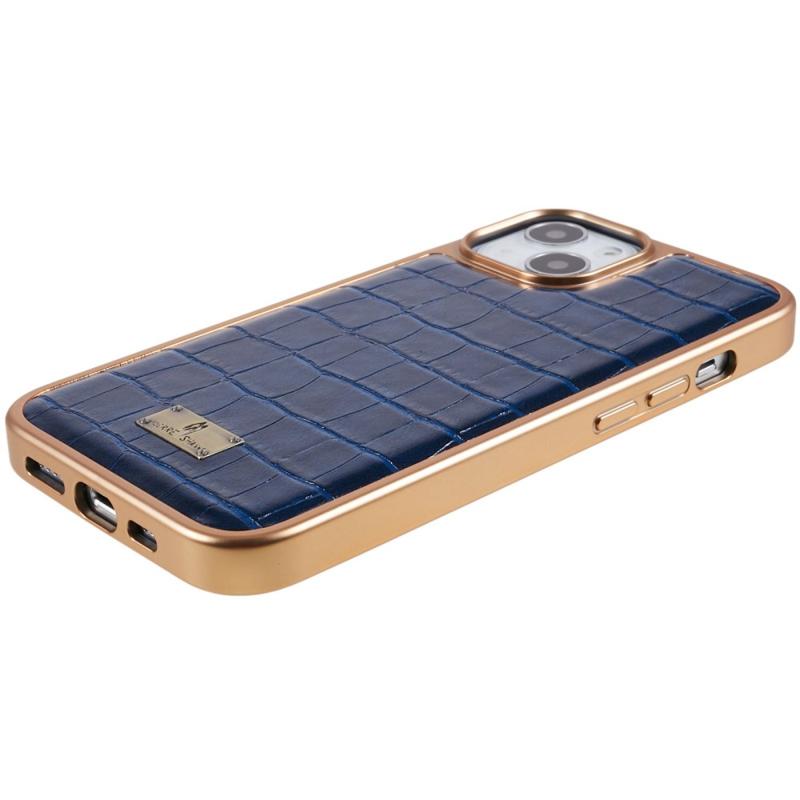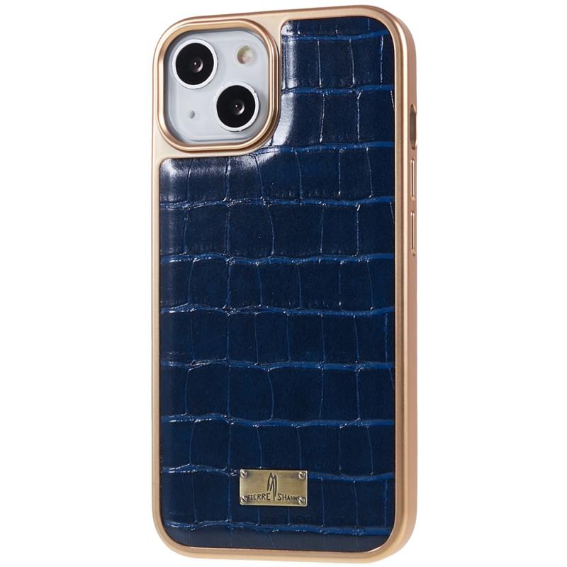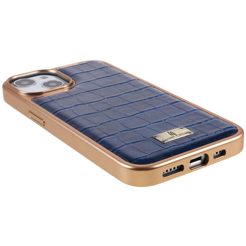 FIERRE SHANN För iPhone 14 Plus Krokodilstruktur PU-läderbelagd TPU-bakfodral Smartphone Elektropläterat skyddsfodral