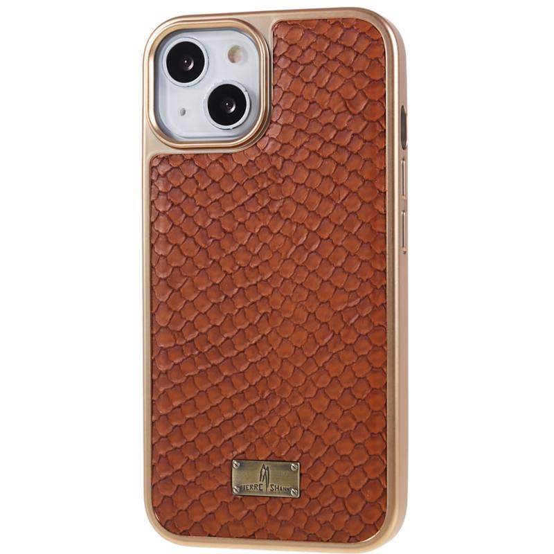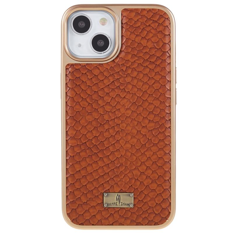 FIERRE SHANN för iPhone 14 Plus Snake Texture PU-läderbelagd TPU-telefonfodral Elektropläterat Stötsäkert anti-repskydd