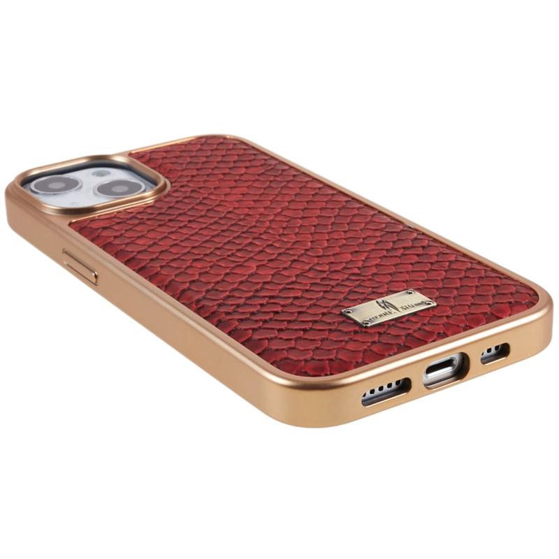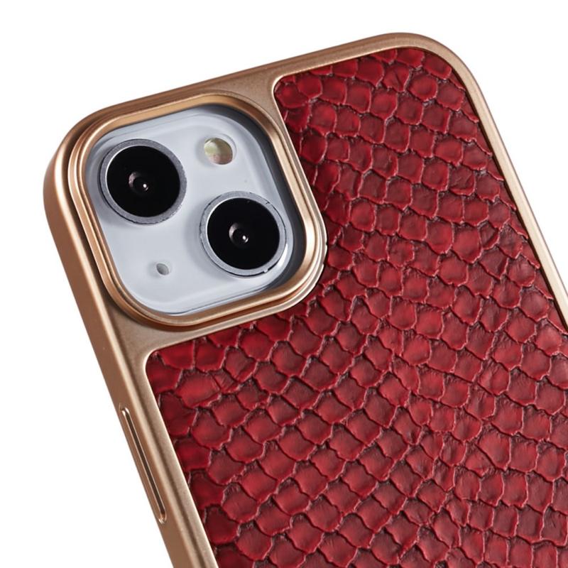 FIERRE SHANN för iPhone 14 Plus Snake Texture PU-läderbelagd TPU-telefonfodral Elektropläterat Stötsäkert anti-repskydd