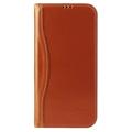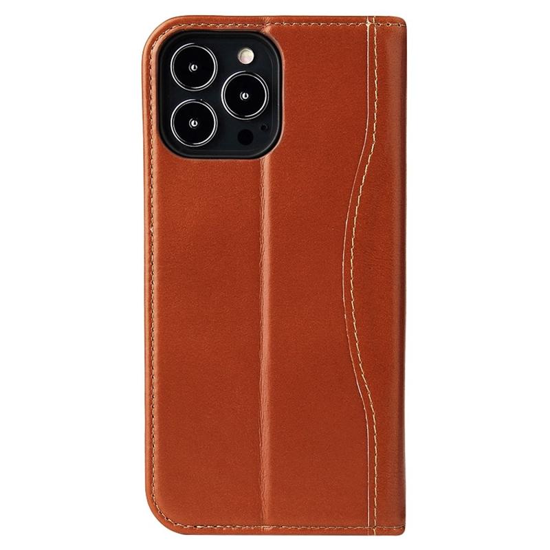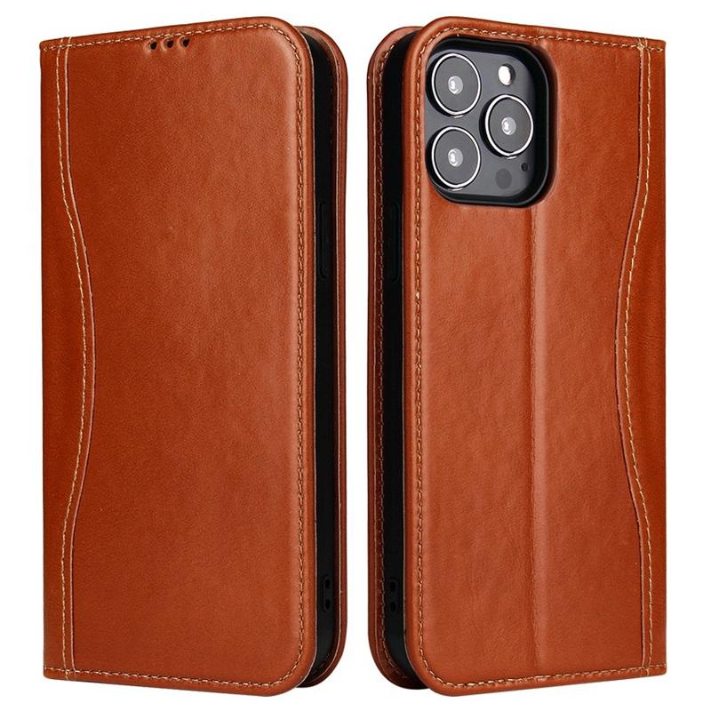 FIERRE SHANN mobilfodral till iPhone 14 Pro, översta lagret med kohudsläder, plånboksställ, Stötsäkert fodral