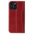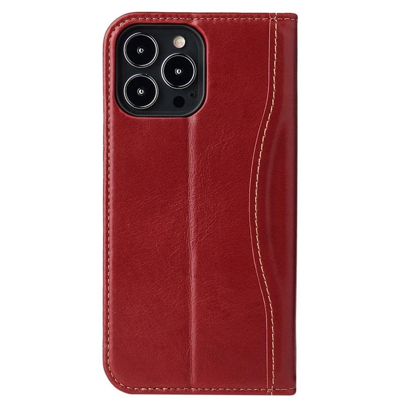 FIERRE SHANN mobilfodral till iPhone 14 Pro, översta lagret med kohudsläder, plånboksställ, Stötsäkert fodral