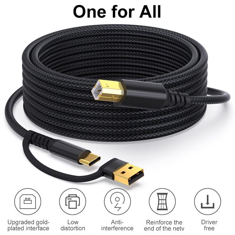 Flätad 2-i-1 USB-A / USB-C till USB-B skrivarkabel - 5m