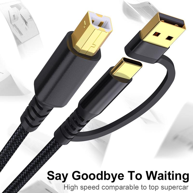 Anslut alla moderna bärbara eller stationära datorer till kontorsskrivare utan att behöva bära två separata kablar. Denna 5m långa flätade kabel har en vändbar USB-C-kontakt och en klassisk USB-A-kontakt gjuten i ena änden, med en guldpläterad fyrkantig USB-B-kontakt i den andra. Växla mellan gamla towers och nya ultrabooks på några sekunder, njut av stabila USB 2.0-datahastigheter på upp till 480 Mb s och håll skrivbordet snyggt med en trasselfri nylonväv.