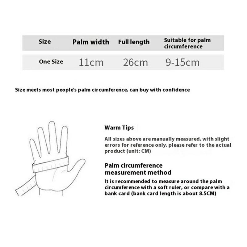 - One-Size-Fits-Most - Handflatans bredd: 11 cm | Längd: 26 cm | Passar handflatans omkrets: 9-15 cm.
