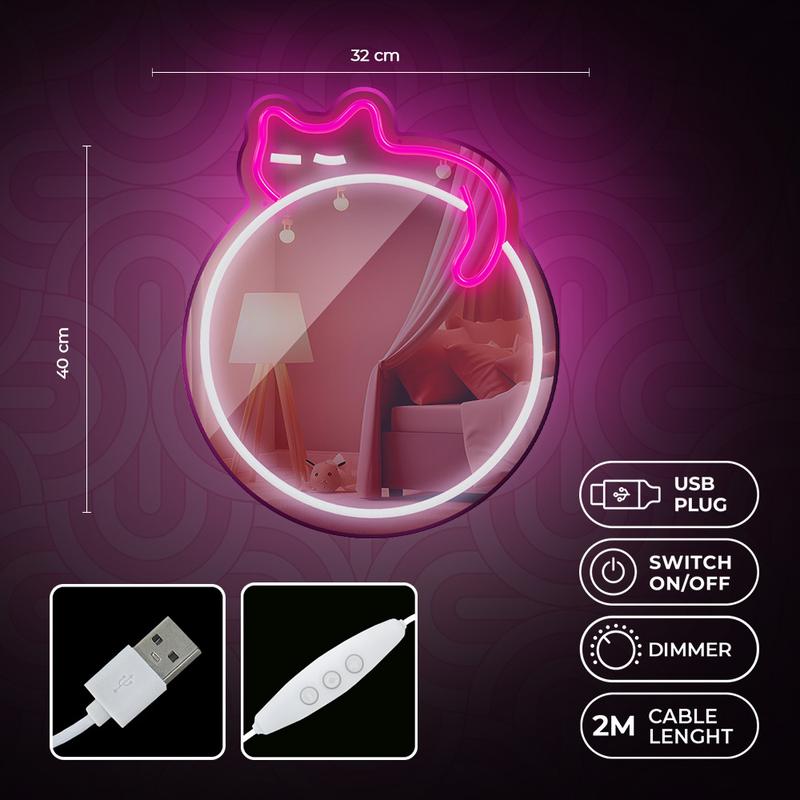 Förhöj din inredning med Neon MIRROR LED, en perfekt blandning av stämningsfull belysning och en praktisk spegel omgiven av en snygg neonram. LED-ljuset skapar en mysig och avkopplande atmosfär, vilket gör den idealisk för både heminredning och vardagsbruk. Den mångsidiga användningen gör den till ett framträdande inslag i såväl servicesalonger som i bostadsområden.