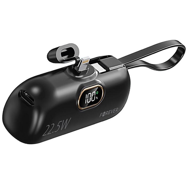 Forever MTB-100 Lightning Mini Power Bank med USB-C-kabel 5000mAh - 22.5W On-the-Go Boost för Lightning-enheter
