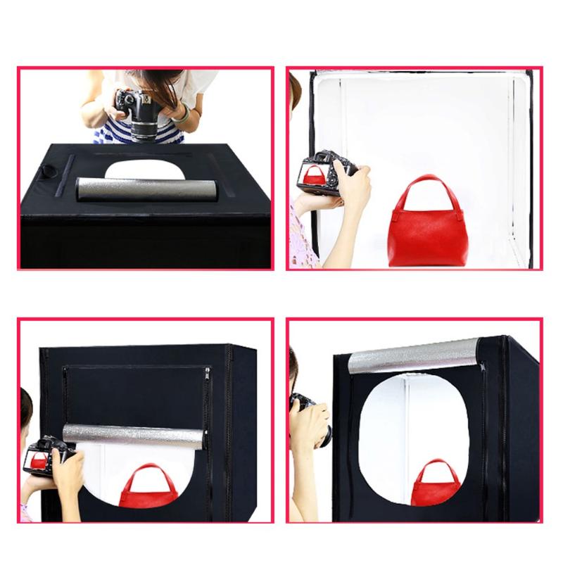 Öppningar på framsidan och på toppen av fotograferingstältet kan möta dina olika fotograferingsvinklar
