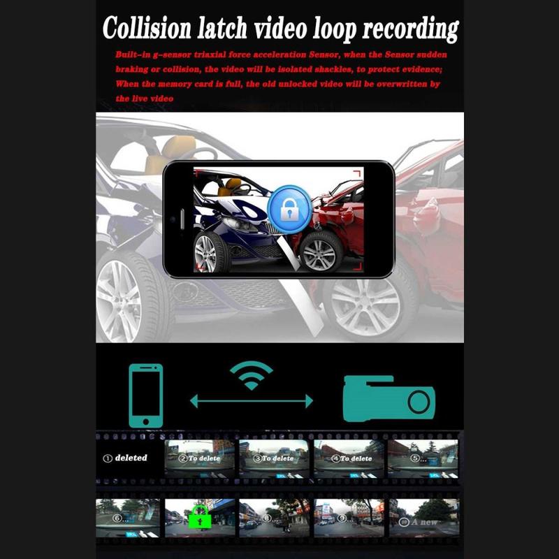 Stöder kontinuerlig loopinspelning (1/2/3 minuter) med automatisk filöverskrivning. Den inbyggda kollisionssensorn (G-sensor) låser viktiga bilder för att förhindra oavsiktlig radering.