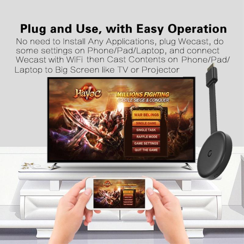 - Plug & Play-användning - Enkel att installera - anslut bara dongeln till din HDMI-port, strömsätt den via USB och anslut via WiFi.