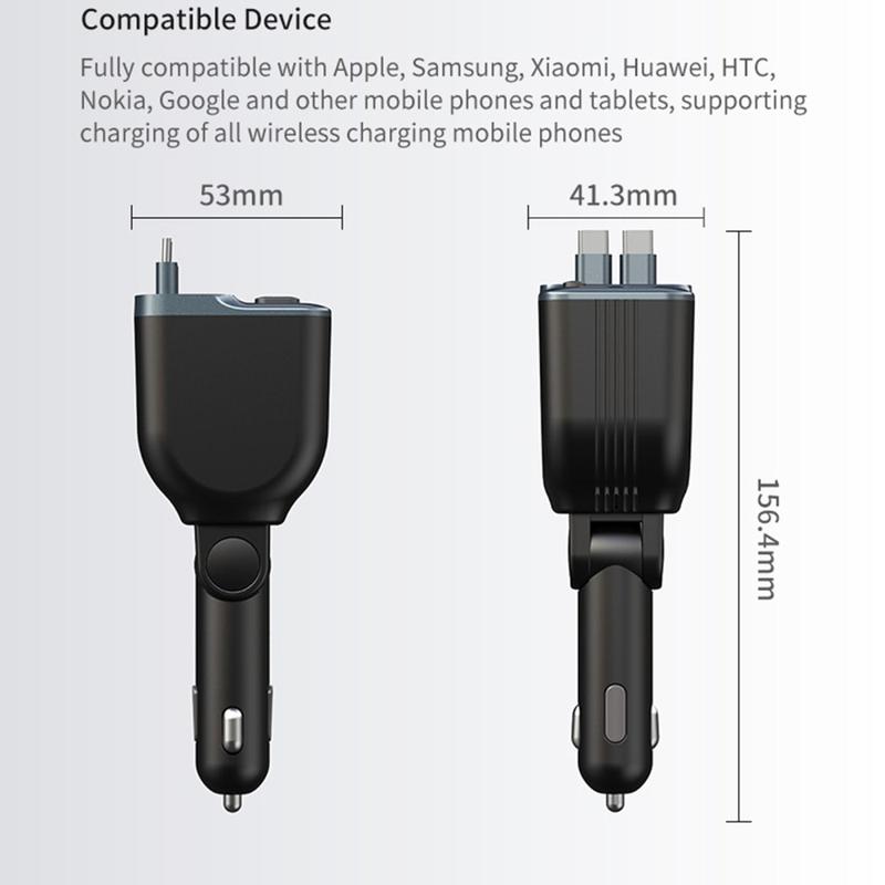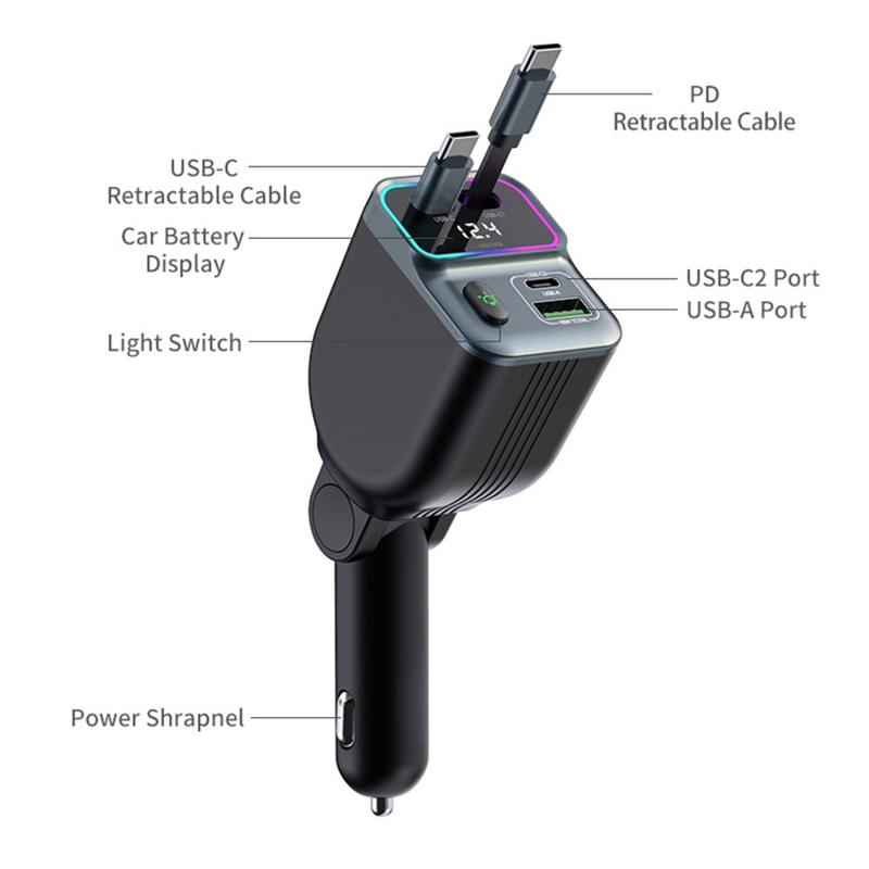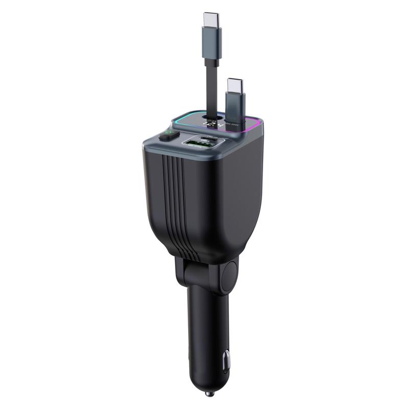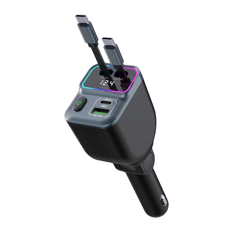 GC15 83W billaddare med realtidsspänningsmätare och infällbara USB-C-kablar