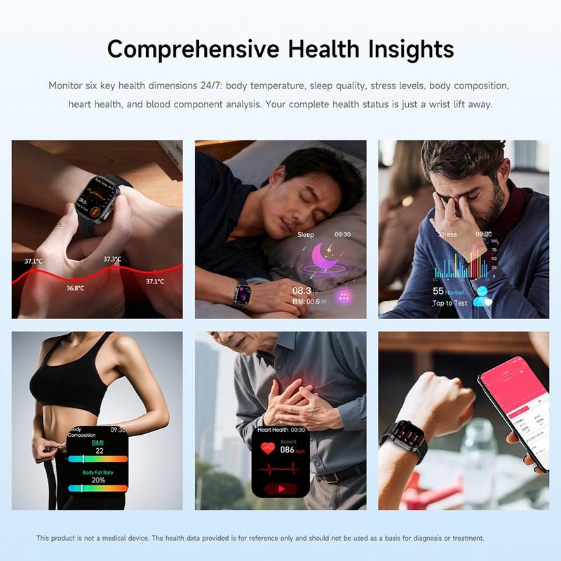 GE52 Smart Watch levererar förstklassig hälsoövervakning, moderna smartwatch-funktioner och en högupplöst skärm till ett exceptionellt värde. Dess omfattande uppsättning sensorer, anpassningsbara gränssnitt, Bluetooth-samtal och detaljerade hälsoövervakning gör den till en allt-i-ett-lösning för användare som vill hålla sig uppkopplade, aktiva och informerade om sin hälsa.