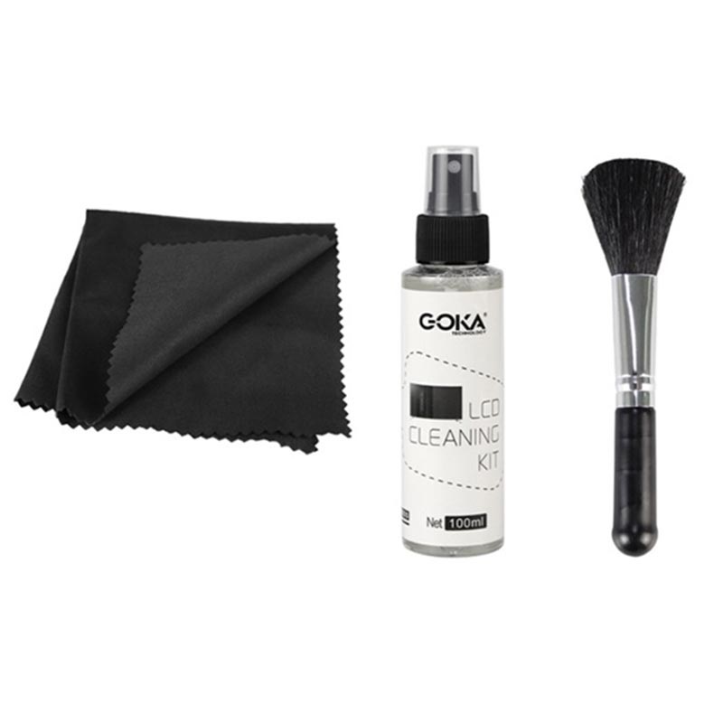 Goka Premium 3-i-1 Skärmrengöringsset - 100ml Spray, Rengöringsduk & Borste