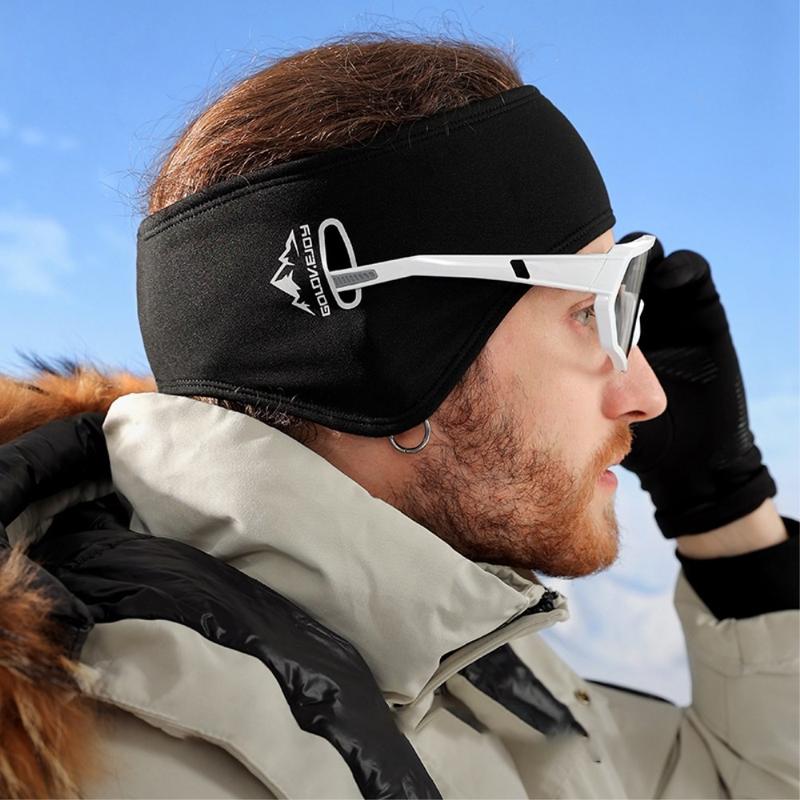 Golovejoy DEZ39 Varmt och vindtätt pannband för sport, med extra öronvärme och hål för glasögon