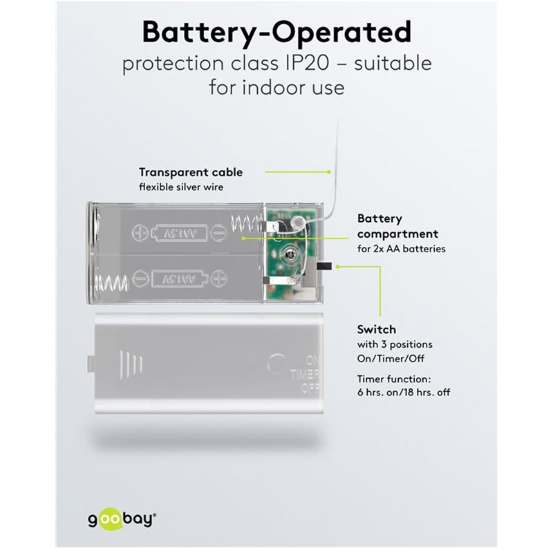 - Timerfunktion: 6 timmar på / 18 timmar av med enkel på/av/timer-omkopplare