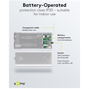 - Batteridriven (2× AA, ingår ej) för placering var som helst inomhus