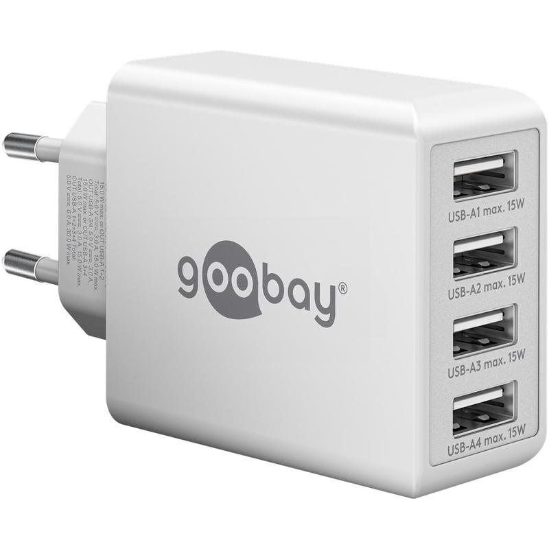 Goobay 30W 4x USB-A väggladdare - 4-portars väggadapter med smart laddningsdetektering