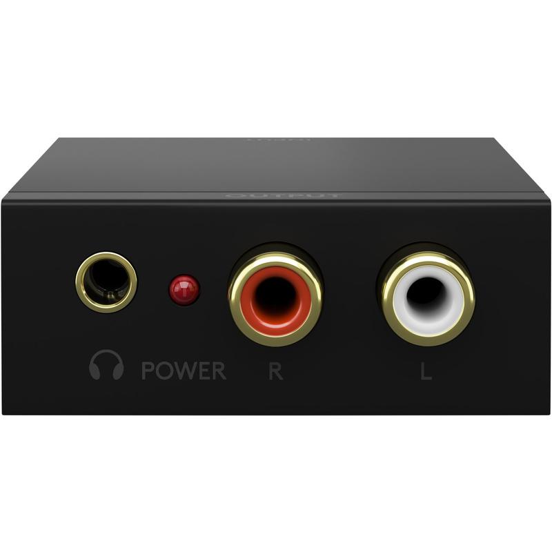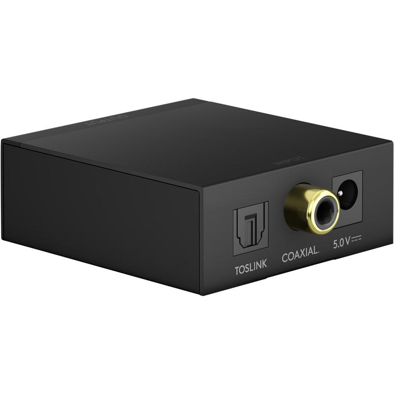 - Konverterar TOSLINK eller koaxiellt S/PDIF-ljud till analog vänster/höger RCA eller 3,5 mm stereo - inga extra boxar behövs.