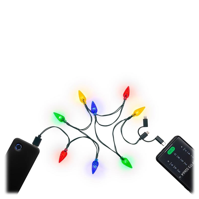 Denna modell är utrustad med åtta färgglada LED-ljus som ger dig julkänslor på ett unikt sätt. Kabeln har både MicroUSB, USB-C och Lightningkontakt, så du kan använda den för uppladdning av nästan alla typer av smartphones, surfplattor och andra mobila enheter.