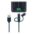 - Inbyggda USB-C, Lightning och MicroUSB-kontakter