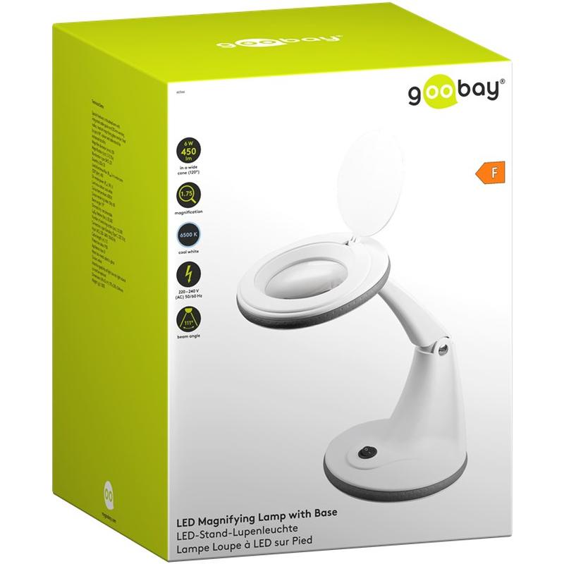 Goobay LED-förstoringslampa med bas - 6W ringljus, 100 mm glaslins, 1,75x (3 dioptrier), 450 lm, 6500K kallvit, justerbar arm (svart)