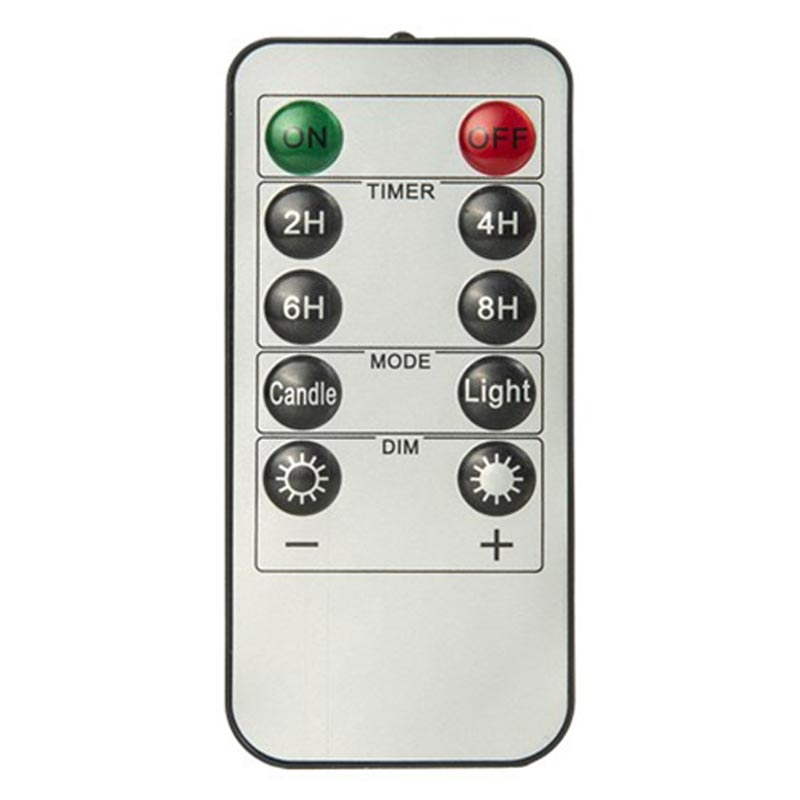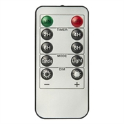 - Fjärrkontroll med 10 knappar för på/av, flimmer, stadigt ljus och dimning