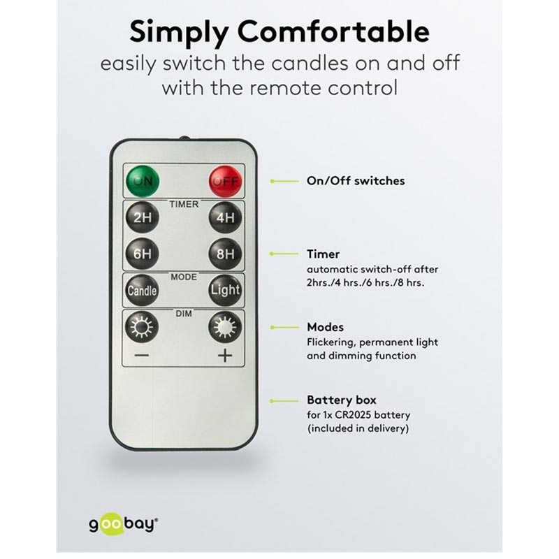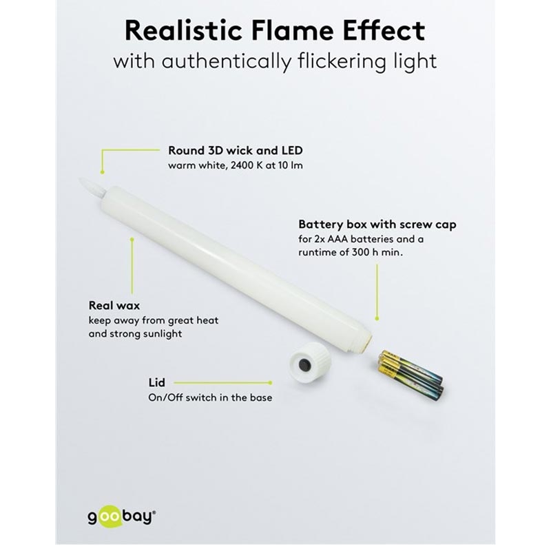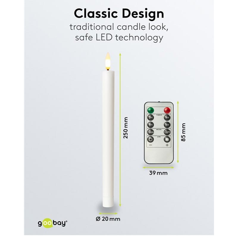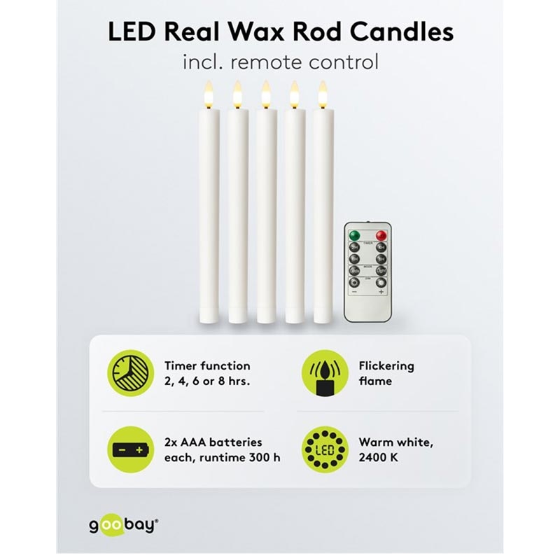 Goobay Set med 5 LED-ljusstakar i äkta vax - 3D-flamma, fjärrkontroll, timer, dimbar, varmvit 2400 K