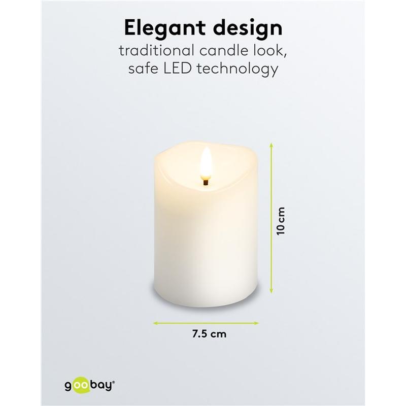 Goobay LED-ljus i äkta vax - 3D-flamma, timerfunktion, varmvit 2700 K, batteridriven