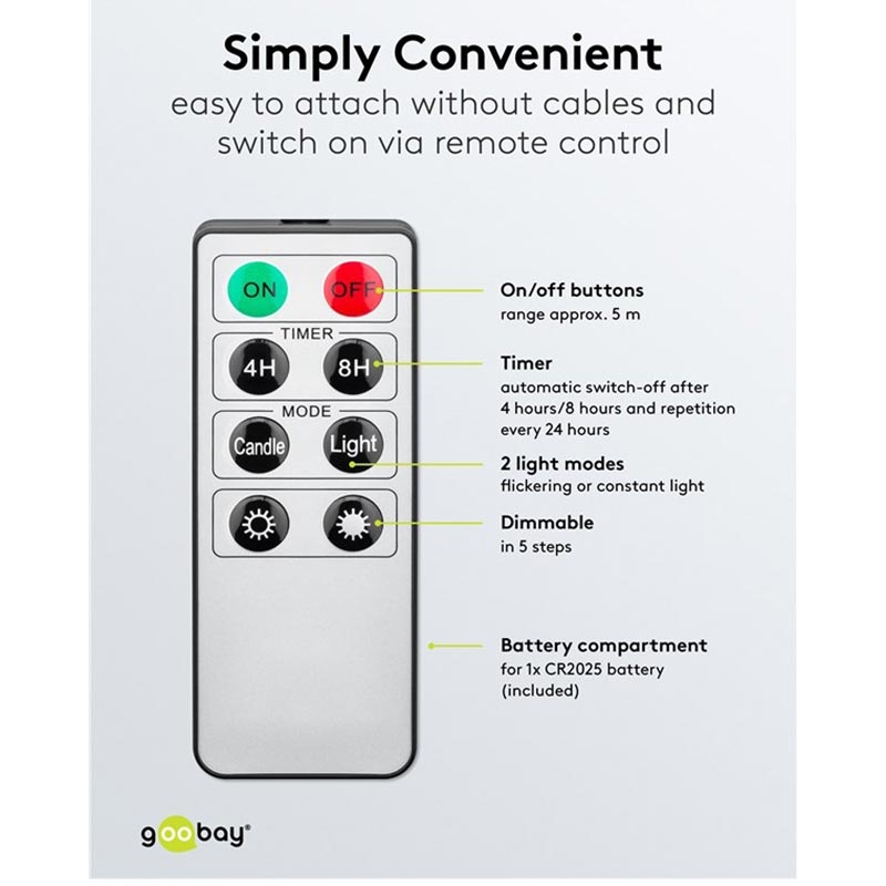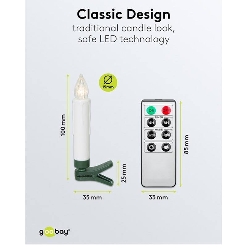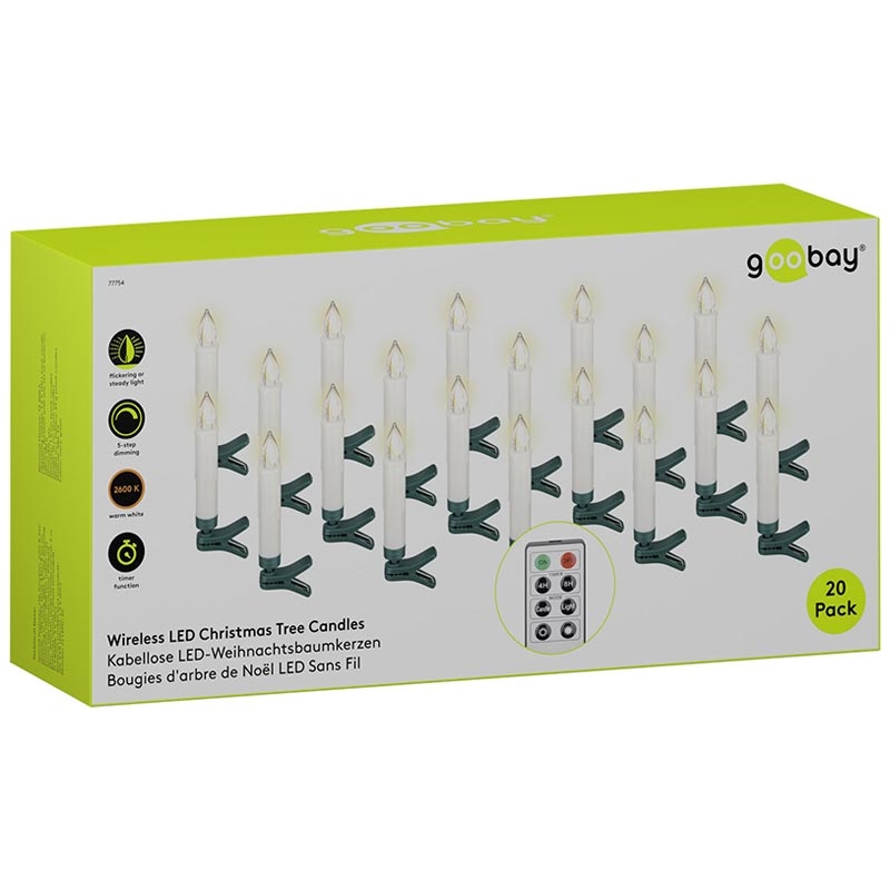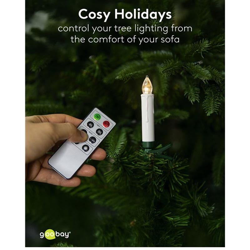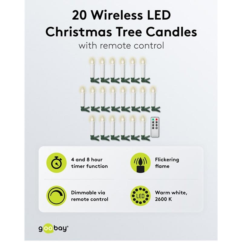 Goobay Trådlös LED-julgransljusuppsättning - 20 dimbara ljus med clips, fjärrkontroll och timer (2600 K)