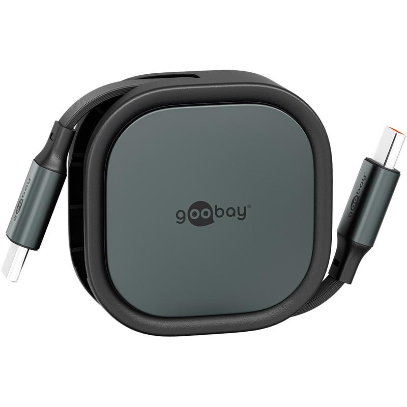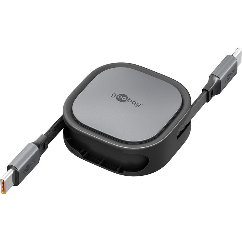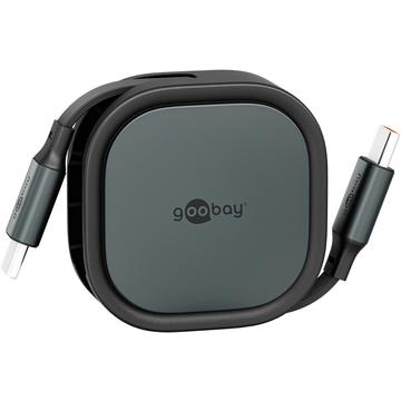 Goobay utdragbar USB-C-kabel - 1m platt laddningskabel med 15W effekt och automatisk utdragningsmekanism