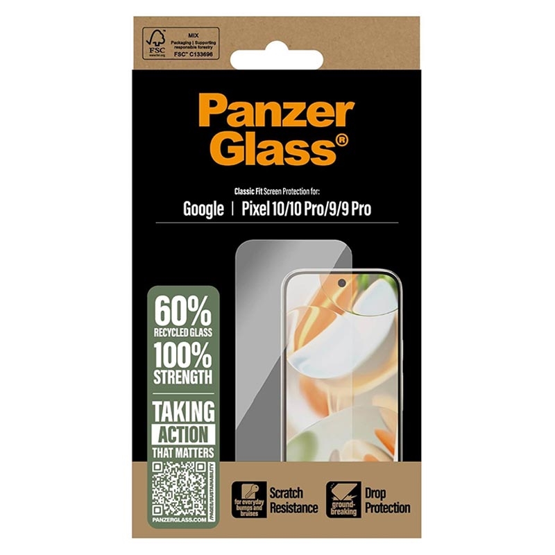 - Kvalitativt skärmskydd från PanzerGlass till Google Pixel 10, Pixel 10 Pro, Pixel 9, Pixel 9 Pro