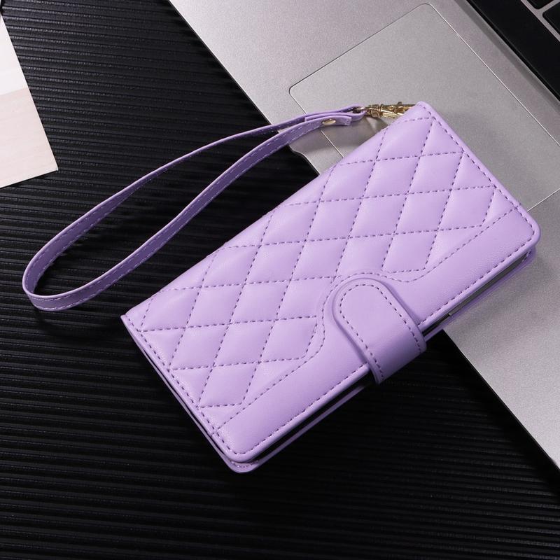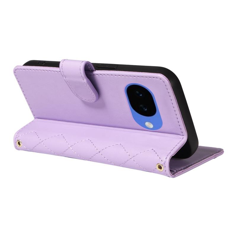Lyxigt quiltat plånboksfodral med axel- och handledsrem för Google Pixel 10a - skyddande fodral med rombmönster