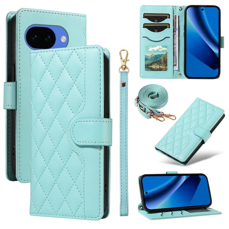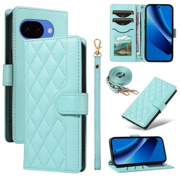 Lyxigt quiltat plånboksfodral med axel- och handledsrem för Google Pixel 10a - skyddande fodral med rombmönster