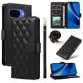 Lyxigt quiltat plånboksfodral med axel- och handledsrem för Google Pixel 10a - skyddande fodral med rombmönster