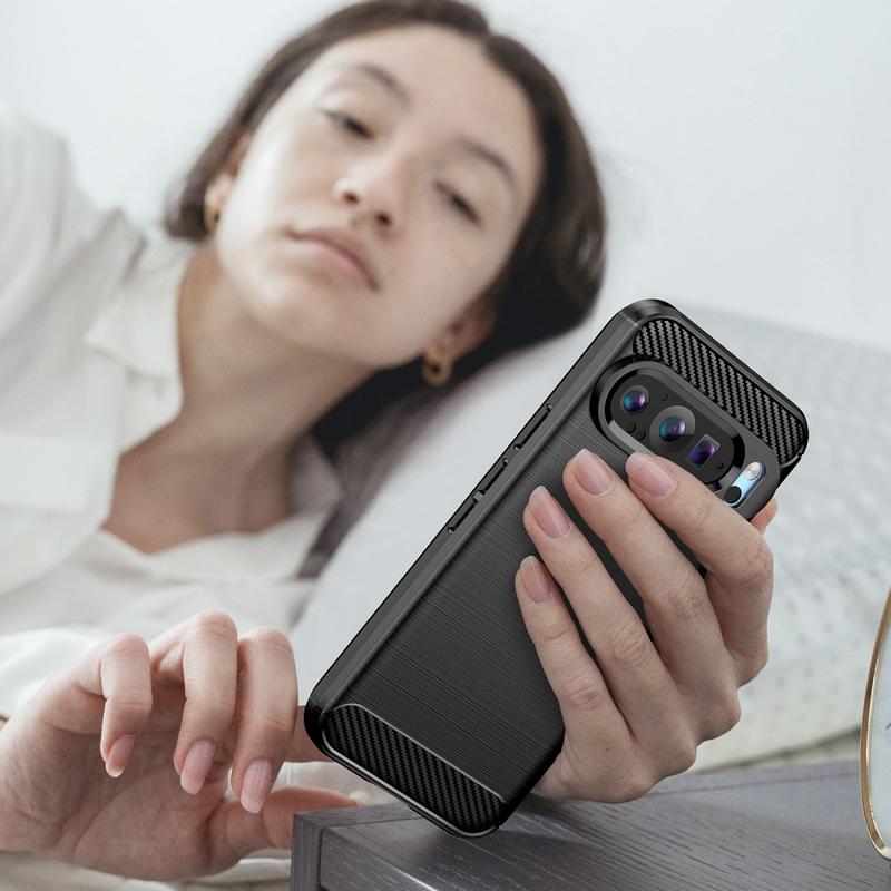 Borstat TPU Skal till Google Pixel 9, Pixel 9 Pro - Kolfiber