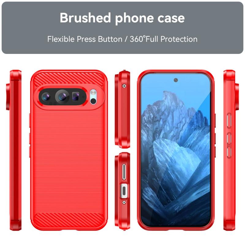 Borstat TPU Skal till Google Pixel 9, Pixel 9 Pro - Kolfiber