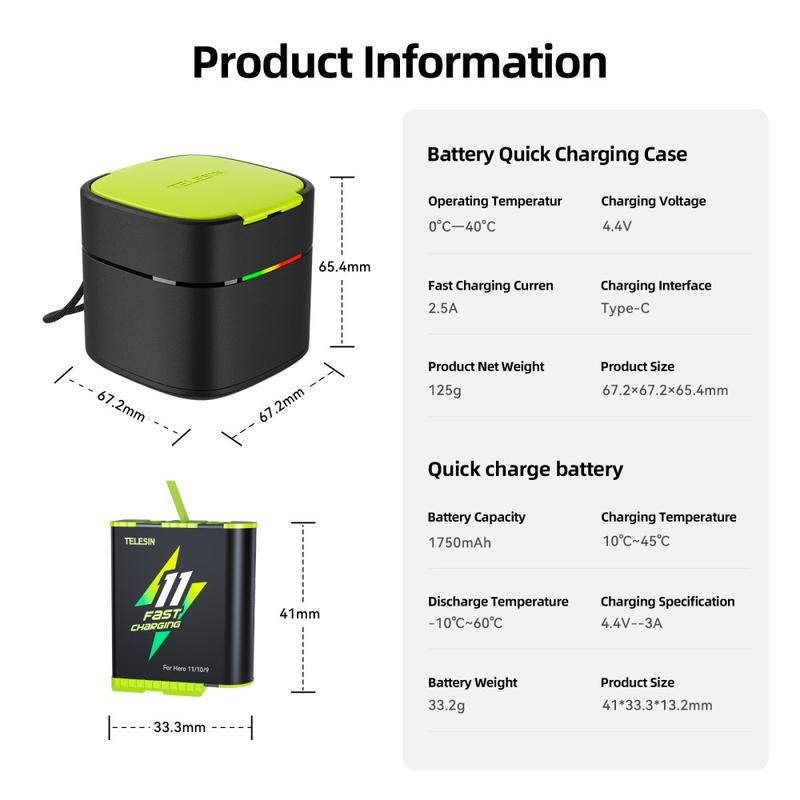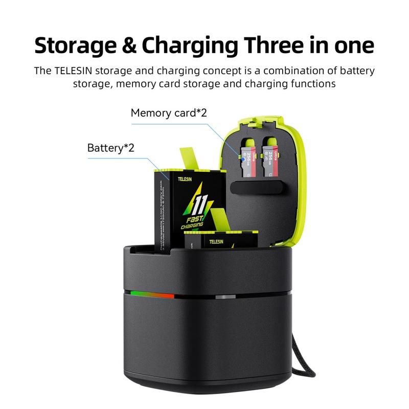 TELESIN GP-FCK-B11 Batteriladdare med 2 platser och förvaringsbox för GoPro Hero 11 - snabb och tillförlitlig strömförsörjning