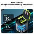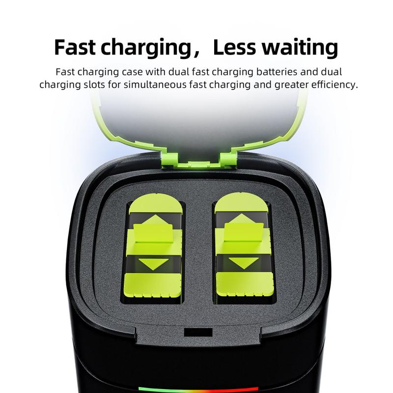 Låt aldrig ett urladdat batteri stoppa ditt äventyr! TELESIN GP-FCK-B11 2-Slot Battery Charger & Storage Box är utformad för GoPro Hero 11-användare som behöver en snabb, effektiv och säker laddningslösning. Med möjlighet att ladda två batterier samtidigt och en snabbladdningsfunktion som laddar upp till 75 % på bara 30 minuter, ser den här kompakta och resevänliga laddaren till att du alltid är redo att fånga händelsen.