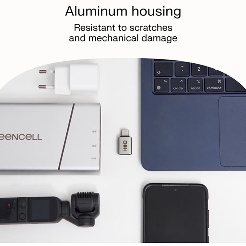 Green Cell OTG Adapter är en blandning av stil, styrka och snabbhet. Den kompakta aluminiumkroppen garanterar hållbarhet och enkel bärbarhet, medan dataöverföringen på 480Mbps och laddningskapaciteten på 12W gör den till en pålitlig vardagsfaktor.