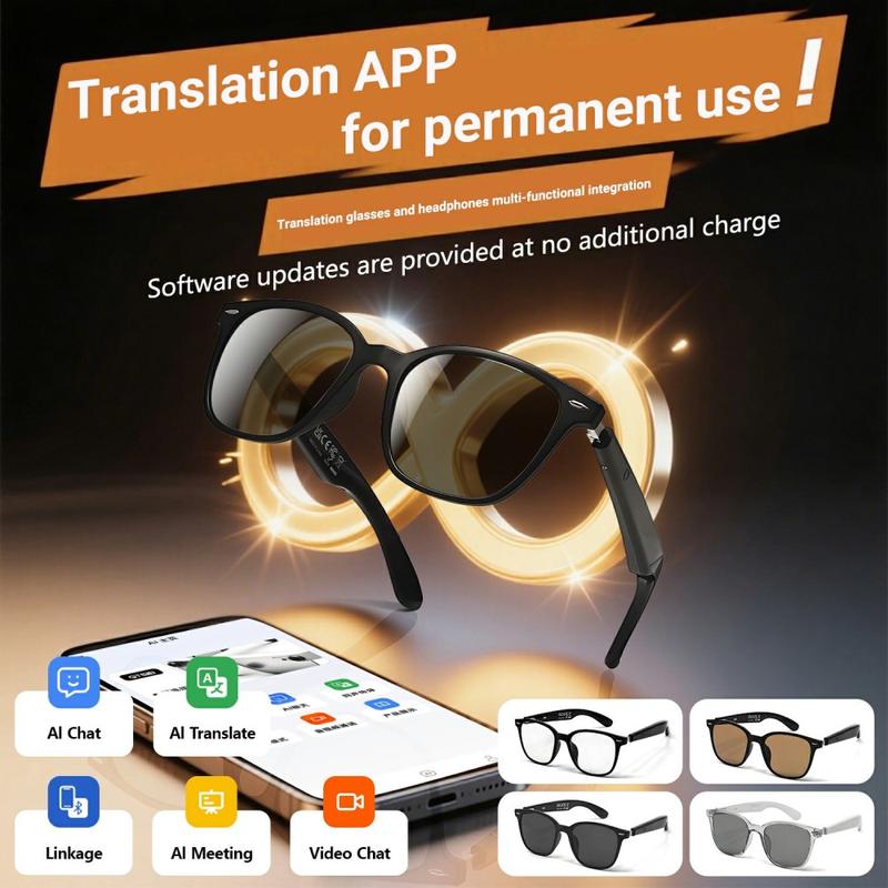 GT-35 Smarta AI-översättningsglasögon - 68-språkig AI, UV400/blåljusskydd och Bluetooth 5.4-samtal