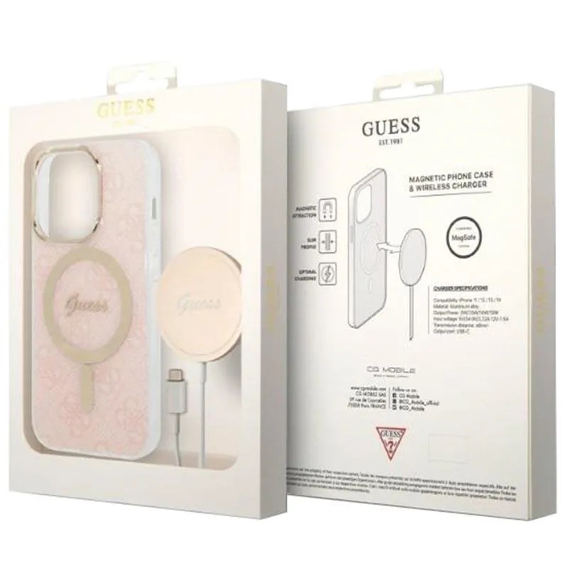 Guess 4G Edition Bundle Pack Hybridskal & Magnetisk Trådlös Laddare till iPhone 14 Pro - 20W