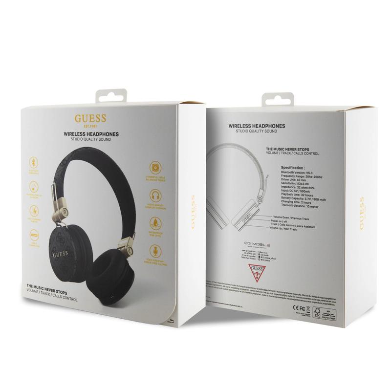 Guess 4G On-Ear trådlösa hörlurar med metall-logotyp - Svart
