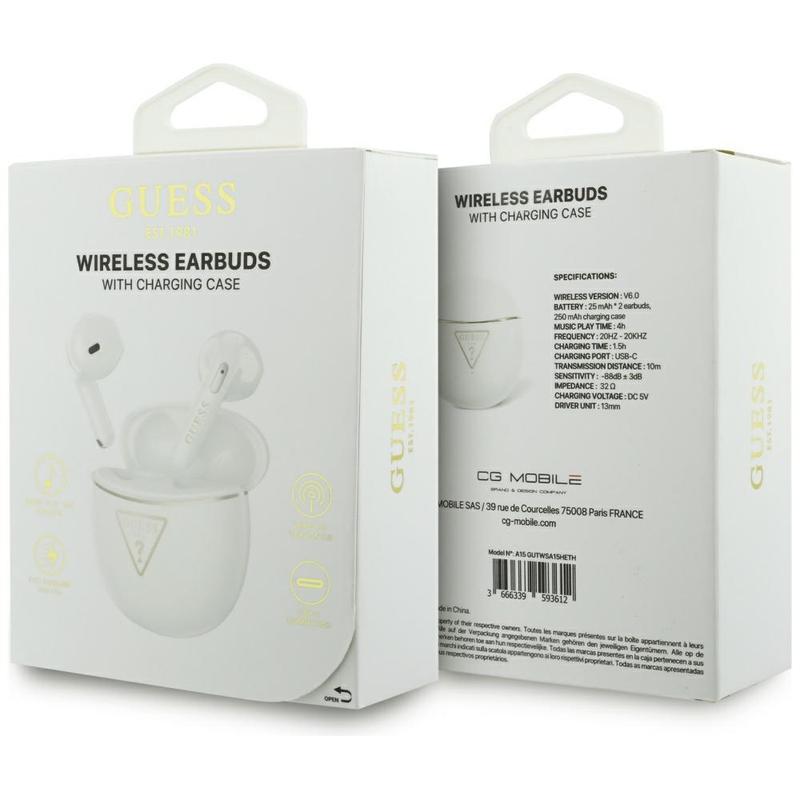 - Trådlös in-ear-design med ett exklusivt Guess Gold Line Triangle-utseende