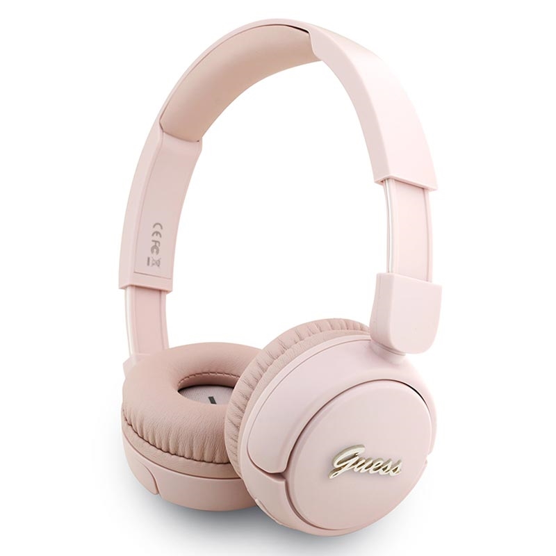 Guess Metal Logo Script Bluetooth 5.3 On-Ear hörlurar - 30 timmars speltid, USB-C snabbladdning, IPX4 svett- och stänksäker