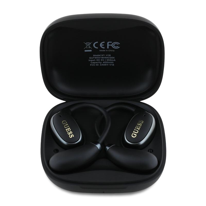 - Ergonomisk komfort: Lättviktsdesign och säker passform på öronkrokarna gör att du kan känna dig bekväm hela dagen, komplett med en djärv Guess-logotyp för en elegant, exklusiv look.