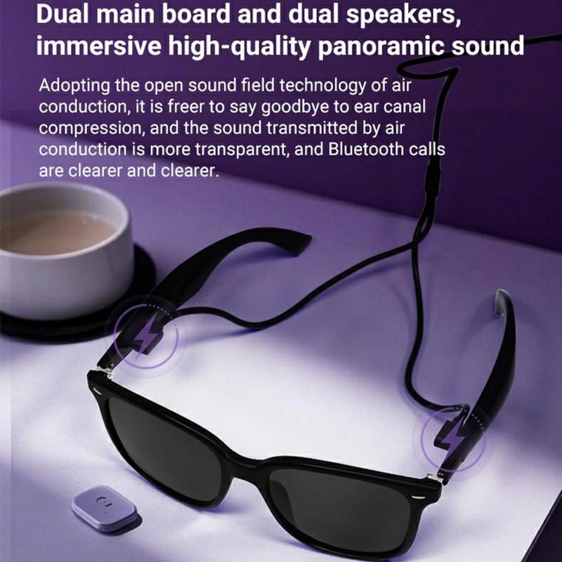 GY500 AI Smarta glasögon omdefinierar vad glasögon kan göra genom att slå samman solskydd, trådlöst ljud och AI-översättning i en elegant enhet. Dessa solglasögon är utformade för resor, affärer och vardagsliv och har UV400-skyddande linser, inbyggd Bluetooth 5.4-headsetfunktion och AI-översättning i realtid för sömlös kommunikation över hela världen.