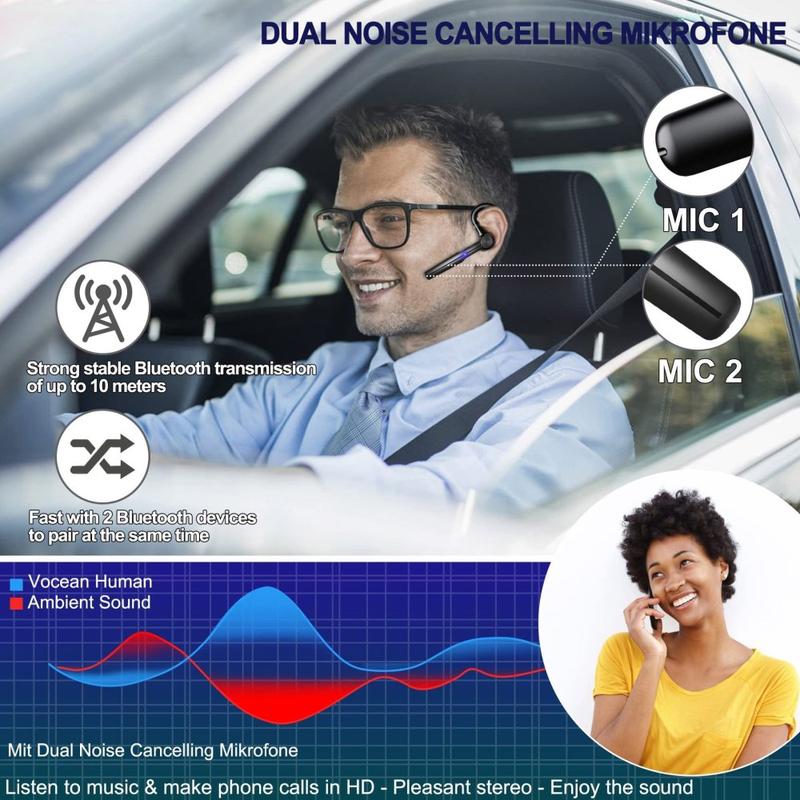 Håll fokus och ha händerna fria hela dagen med H03, en Bluetooth-hörlur för ett öra för affärsbruk. Den är utformad för långa samtal och fullspäckade scheman och har ett roterande öronkrokssystem (180 graders rotation av kroken + 270 graders rotation av kroppen) så att du kan bära den bekvämt på valfritt öra och snabbt justera vinkeln efter dina önskemål. Dubbla brusreducerande mikrofoner hjälper till att hålla din röst tydligare i möten, på resor och i kontorsmiljöer, medan Bluetooth-kompatibel 5.3 ger en stabil anslutning upp till 10 m för pålitlig daglig användning.