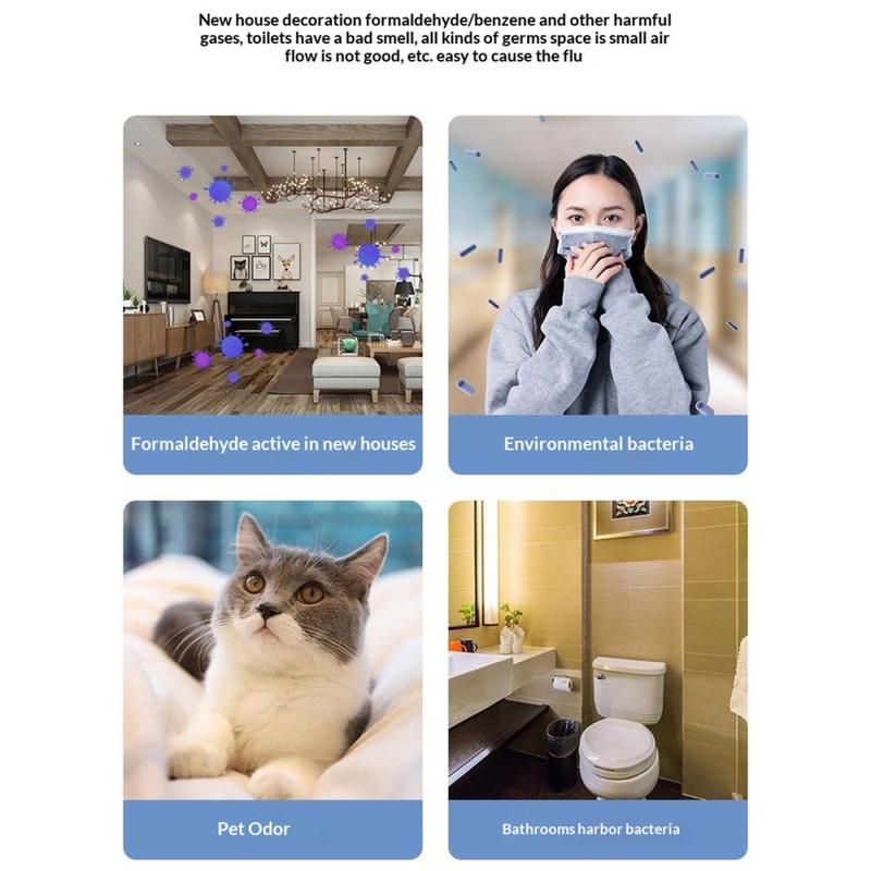 - Luftflödet på 50 m³/h är lämpligt för skrivbord, sovrum, bilar och andra mindre vardagsutrymmen.