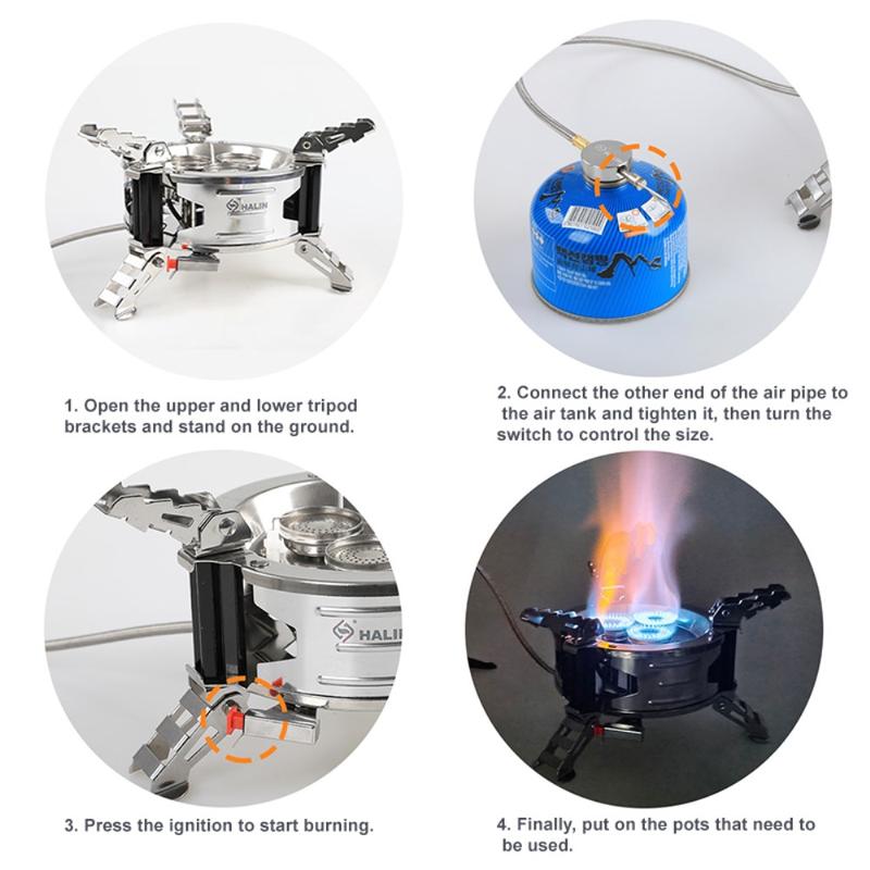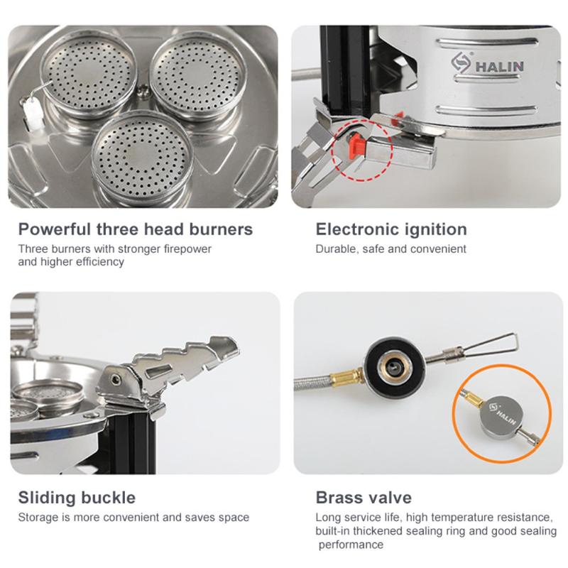 Halin Outdoor bärbart gaskök i rostfritt stål är en hållbar och bekväm matlagningslösning för utomhusaktiviteter. Den elektroniska tändningen gör det enkelt och säkert att starta köket, medan det skjutbara spännet gör det enkelt att förvara och spara utrymme. Mässingsventilen garanterar lång livslängd och hög temperaturbeständighet, med en inbyggd förtjockad tätningsring för bra tätningsprestanda. Med en effekt på 11800 W och en koktid på ca 2-3 minuter är det här köket ett effektivt och pålitligt val för utomhusmatlagning.